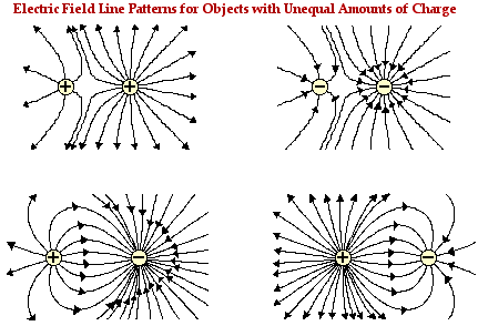 Electric field lines radiate out from a positive charge and terminate on negative charges.